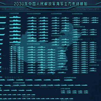 博主“教头1927”通过公开信息源,制作了2030年我国海军阵容预测图,这张图中水面舰艇最引人注目的是将有4艘航母和2艘076电弹两栖攻击舰、6艘075传统两栖舰,18艘055大驱、45艘052D中华神盾舰。